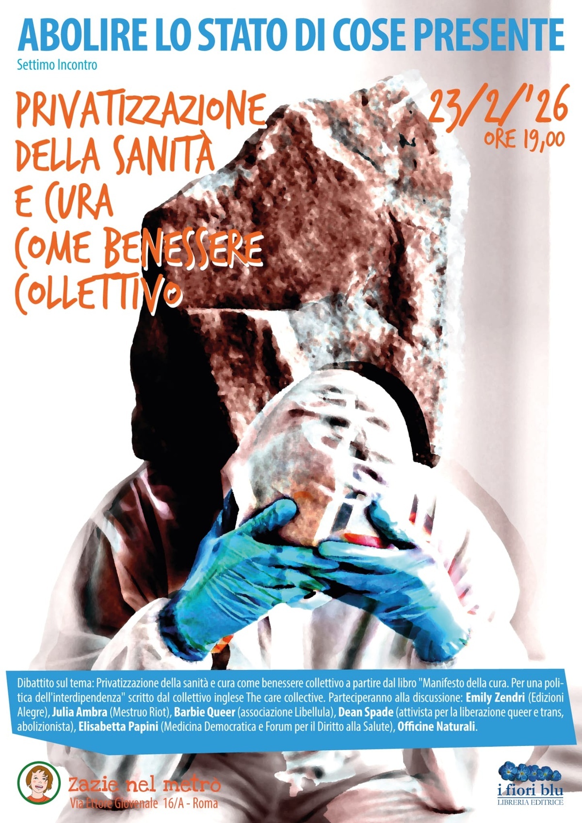 Traendo spunto dalle riflessioni del collettivo inglese The care collective e dal loro "Manifesto della cura", parleremo di privatizzazione della sanità come prodotto naturale del neoliberalismo – di un sistema capitalista, abilista e patriarcale, che si struttura intorno a soggettività e conoscenze privilegiate, discriminando tra vite degne o non meritevoli di essere vissute, negando l'interdipendenza e la responsabilità collettiva.