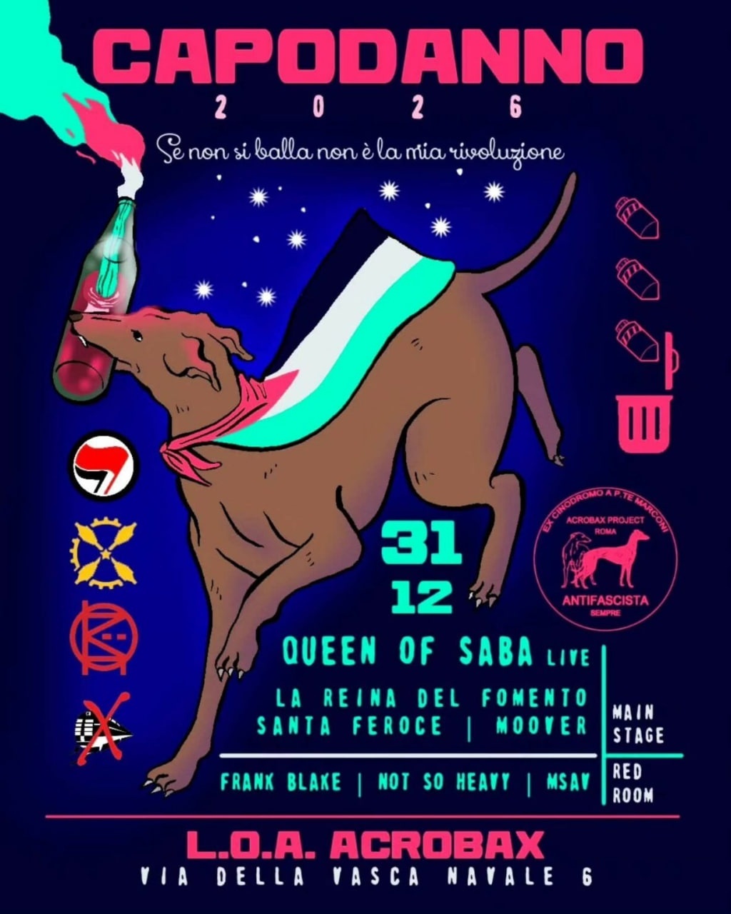 Vi aspettiamo dalle ore 23:00 per ballare insieme a 𝙌𝒖𝙚𝒆𝙣 𝙤𝒇 𝑺𝙖𝒃𝙖 𝙡𝒊𝙫𝒆 dal palco dell’ Acrobax, brindare alla mezzanotte di un anno che finisce… e continuare a danzare sulle macerie di un mondo tutto da cambiare fino all’ alba del 2026!