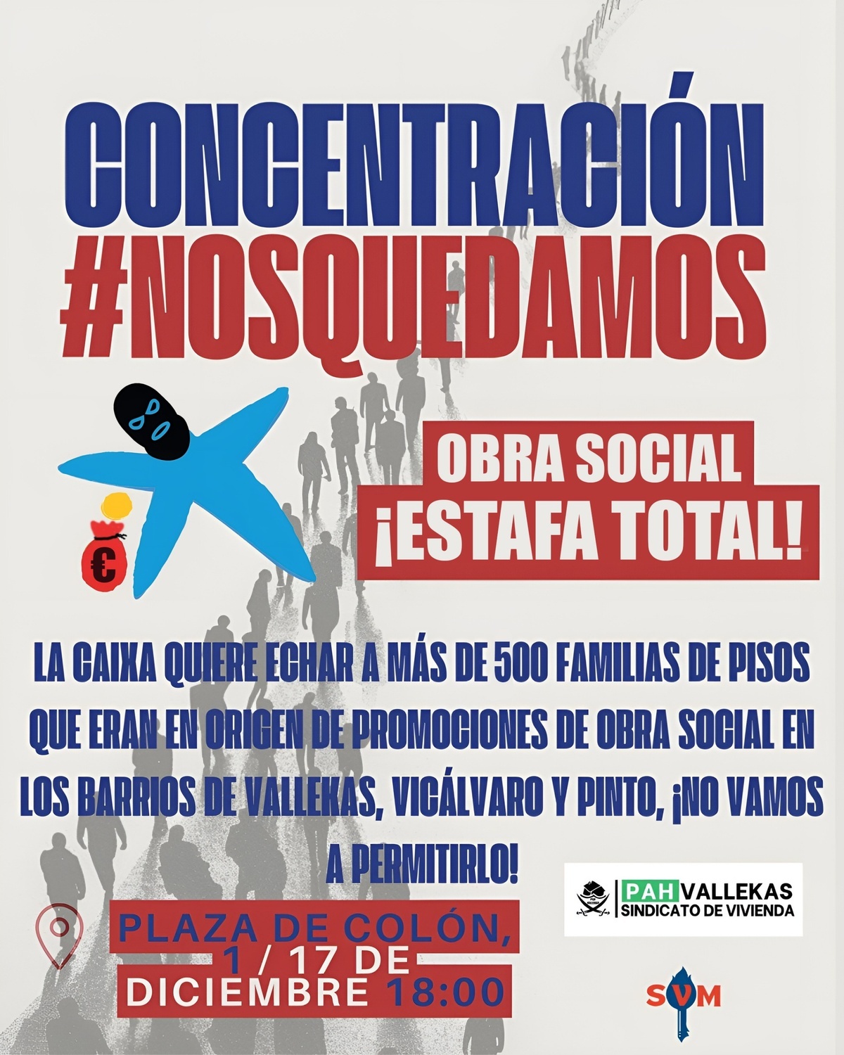 Los bloques de la obra social de Vallecas, Vicálvaro y Pinto nos unimos a la acción de inquilinas del Sindicat de Llogateres i Llogaters con una acción en el #AllinOne, el edificio emblema de CaixaBank, en la que presentaremos en rueda de prensa la demanda masiva interpuesta por las vecinas del bloque.
