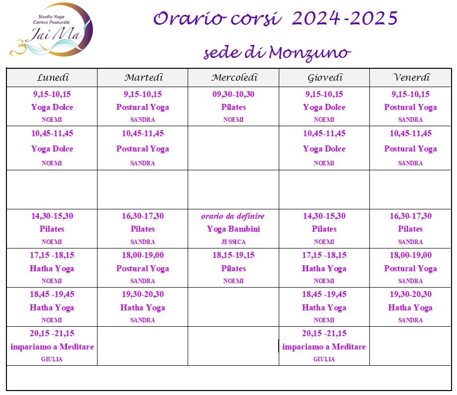 CORSI di “Jai Ma Studio Yoga Centro Posturale” Sede MONZUNO💜