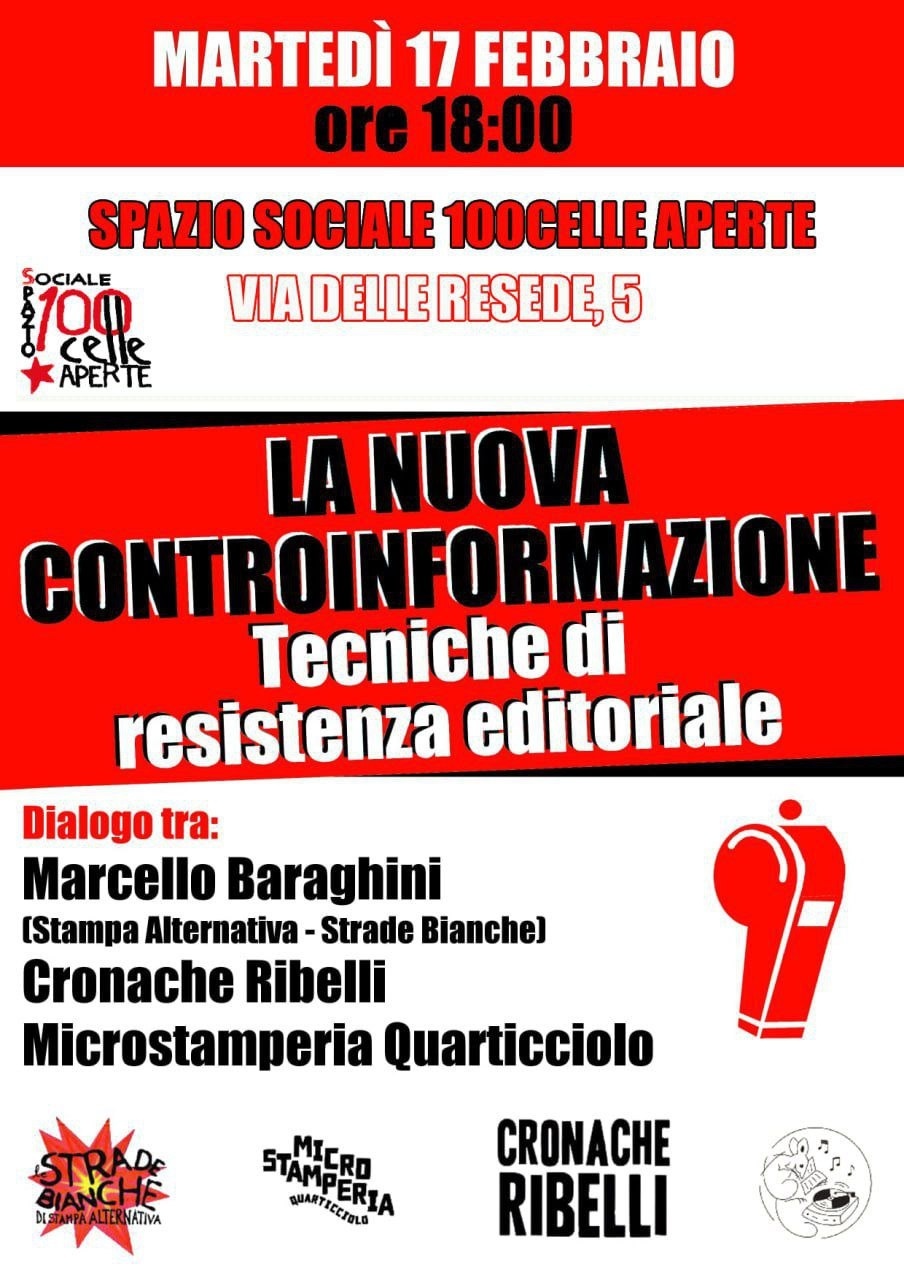 Di fronte a narrazioni mainstream tossiche e bugiarde, che ci lasciano sgomente ma non ci sorprendono affatto, è necessario inceppare l'infernale macchina della propaganda di governo e di stato con ogni mezzo necessario! Ospitiamo, dunque, con grandissimo piacere questa bella e importante iniziativa! DAJE!