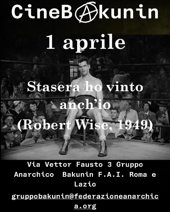 Mercoledì 1aprile "Stasera ho vinto anch'io" al Cineforum Bakunin
