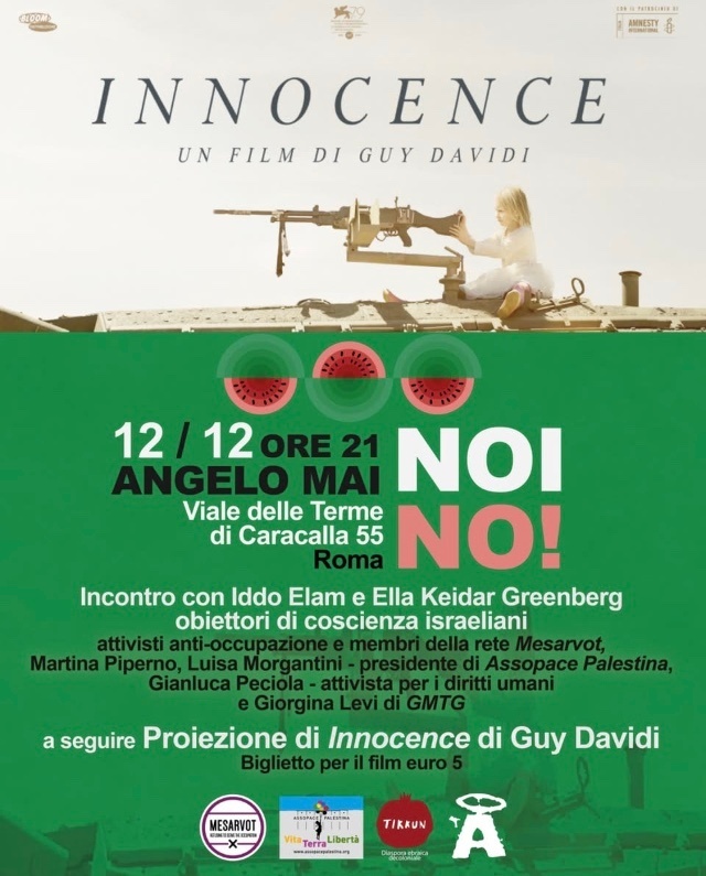 Assopacepalestina e Tikkun- diaspora ebraica anticoloniale organizzano in collaborazione con Angelo Mai Circolo Arci un incontro con due refusnik (obiettori di coscienza) israeliani, iddo Elam ed Ella Keidar Greenberg, attivisti anti-occupazione e membri della rete Mesarvot.