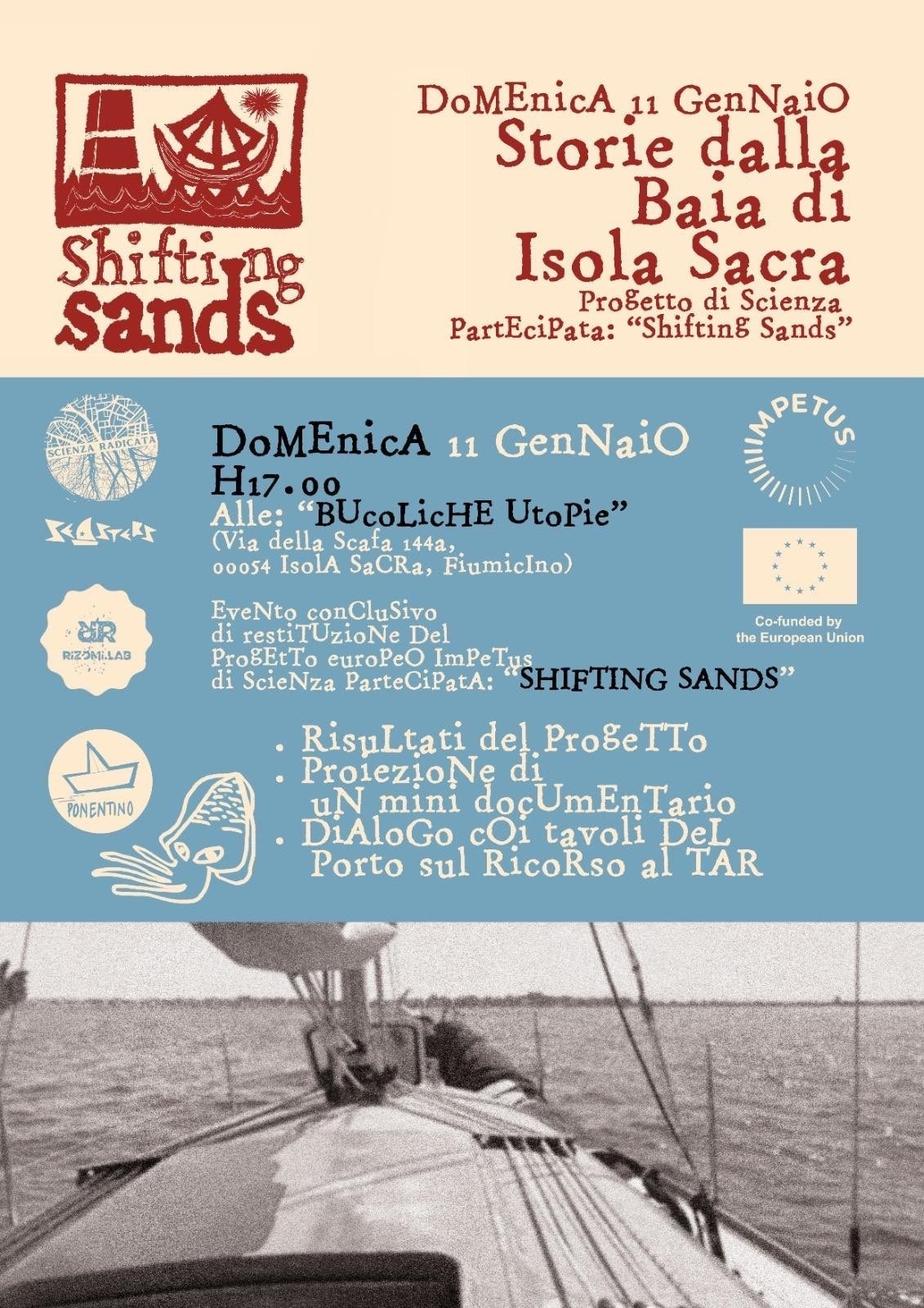 Ci vediamo domenica 11 gennaio a Fiumicino presso Bucoliche Utopie (via della Scafa, 144a, ore 17:00) con l'evento conclusivo di restituzione del progetto “Shifting Sands”.