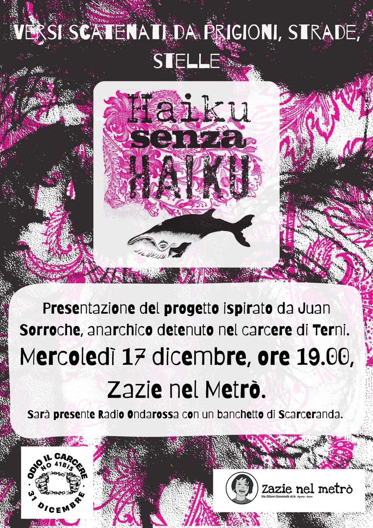 Versi scatenati da prigioni, strade, stelle. Presentazione del progetto ispirato da Juan Sorroche, anarchico detenuto nel carcere di Terni. Sarà presente Radio Ondarossa con un banchetto di Scarceranda.